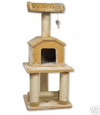 GoPetClub produces pet products and simply offer the widest variety of cat furniture on the market. With our own manufacturer we carry exclusive design cat trees and pet related products that make us a one stop pet supply marketplace.Description: Overall Size : 17.5"W x 17.5"L x 45"H ,Base Board Size : 17.5"W x 17.5"L ,Top Bed Size : 14" x 14" ,Size of House : 14"W x 14"L x 13"H ,Number of Posts : 5 ,Number of Levels : 4 ,Covering Material : Faux Fur ,Board Material : Wood ,Easy to assemble with step by step instruction and tools included
