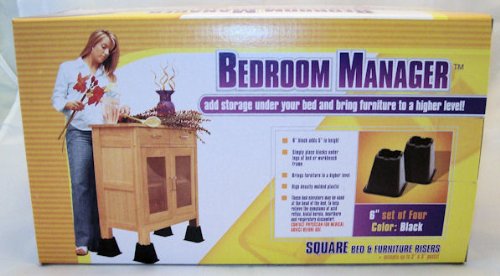 Black, High Density Plastic Bed Risers. Accepts up to 3" Bed Posts. These Bed Risers are a great way to add additional storage space to any bedroom. Perfect for storing oversized containers.