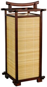 Unique Japanese style lantern, handcrafted from 100% kiln dried Spruce, with Meiji style cross bar at top, and stitched bamboo matchstick shade creates interest and radiates soft, warm glow in any room. UL approved wiring, socket, and switch for 25 Watt bulb. Great gift idea! Ships in 48hrs from our Massachusetts warehouse via Fed Ex, expedited delivery available.