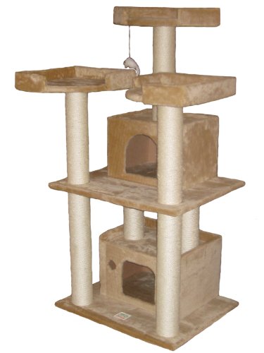 Color : Beige Overall size : 30.5"W x 26"L x 51"H Base board size : 24"W x 19.5"L Size of big condo house: 16.5"W x 12"L x 11"H Size of small condo house: 14"W x 10.5"L x 10"H Size of top 3 preches : 13"W x 13"L x 2.75"H 1 hanging toy Posts covered by natural sisal rope Covering Material : Faux Fur Board Material : Pressed Wood Easy to assemble with step by step instruction and tools included